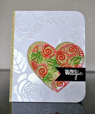 The "RED" really pops on this great CAS design. Using the texture of the brick wall embossing