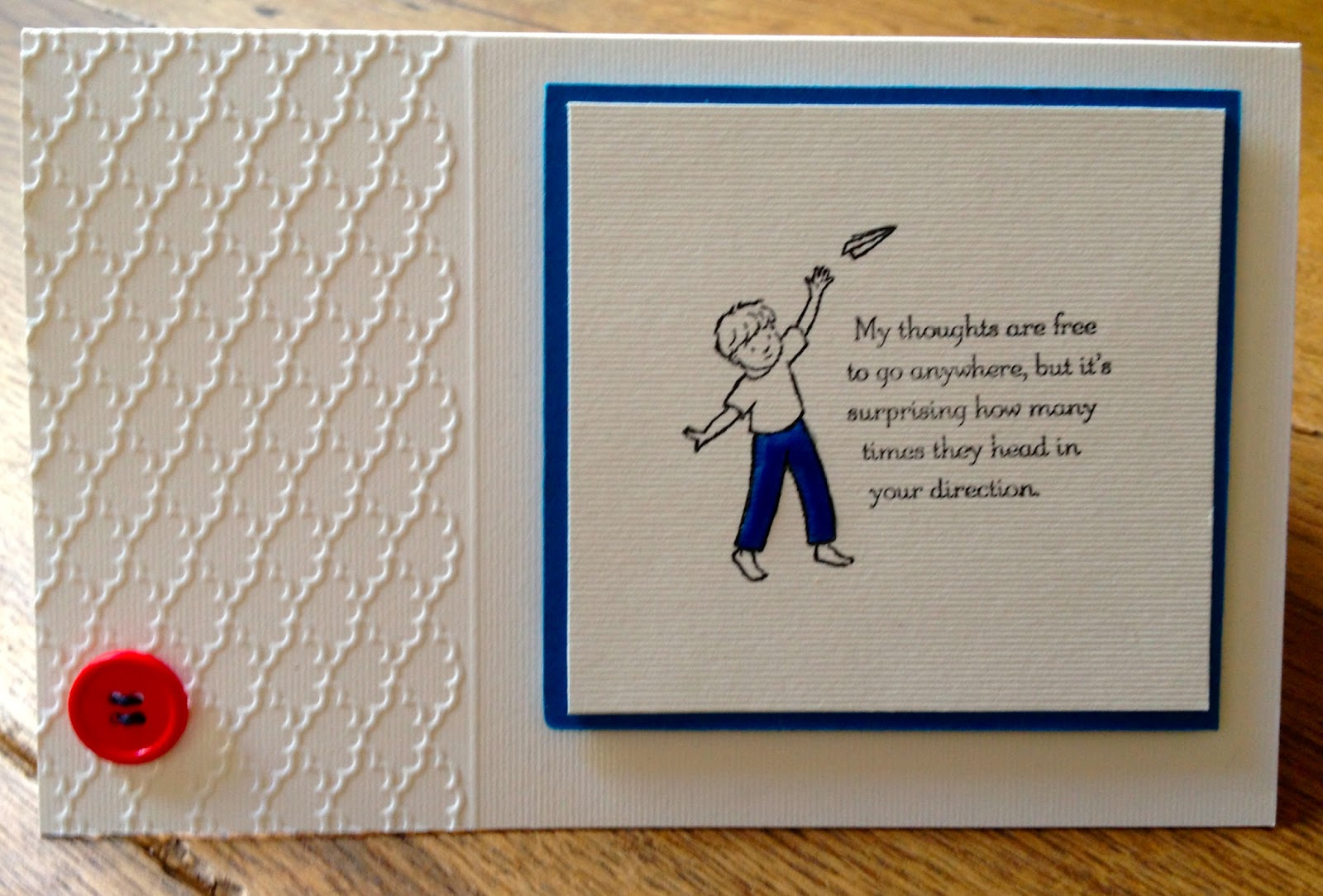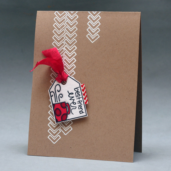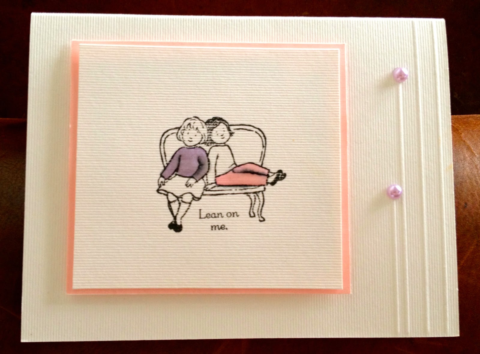 "As soon as I saw Colleen's card, I thought that this is a card I would definitely like to receive! The combination of perfect stamping and embossing made the card stand out and the sentiment is a very powerful message for a dear friend"